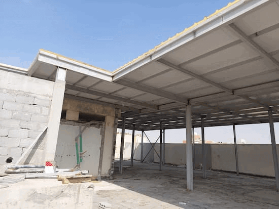 1. *تركيب أسقف ساندويش بانل*: سماكة 5سم و 7.5سم و 10سم مموج لتصريف مياه الأمطار.