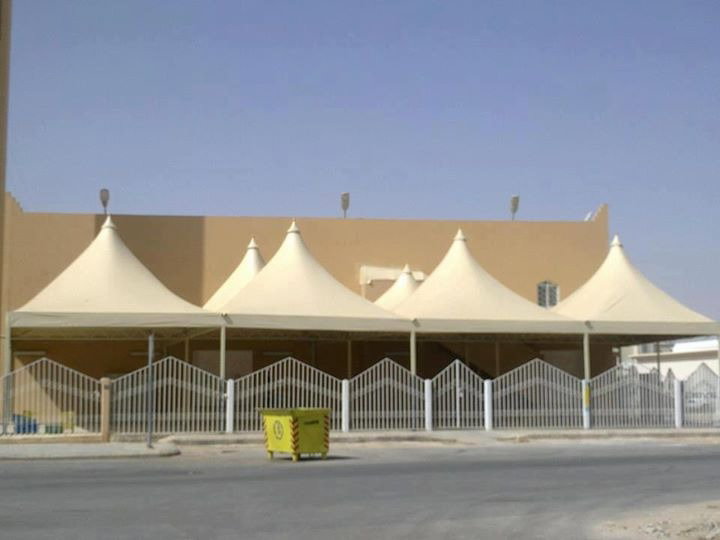 1. مظلات ساحات مدارس PVC: قماش ألماني مقاوم للحريق ومعتمد من الدفاع المدني. عزل حراري 95%. سعر المتر يبدأ من 160 ريال. ألوان معتمدة أبيض وبيج.